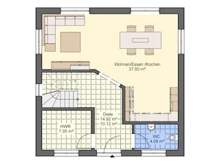 Passen Sie den Grundriss an Ihre persönlichen Bedürfnisse an und besprechen Sie Ihren individuellen Plan mit einem Bauberater des Anbieters.