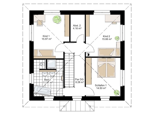 Passen Sie den Grundriss an Ihre persönlichen Bedürfnisse an und besprechen Sie Ihren individuellen Plan mit einem Bauberater des Anbieters.