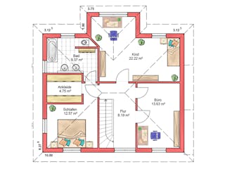 Passen Sie den Grundriss an Ihre persönlichen Bedürfnisse an und besprechen Sie Ihren individuellen Plan mit einem Bauberater des Anbieters.