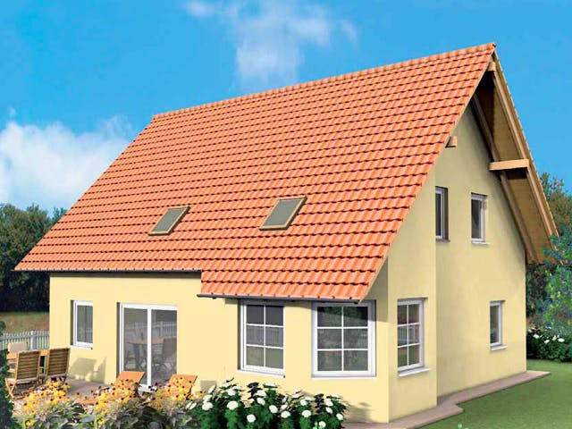 Ein mittelgroßes Familienhaus mit geschickter Flächennutzung und entsprechend gutem Raumangebot. Den besonderen Pfiff erhält das Haus durch seinen großzügigen Erker, der sich vom Erdgeschoss bis zum Dachgeschoss durchzieht.