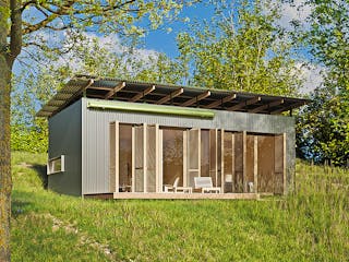 Gefälledach, das wie ein Pultdeckel auf dem Baukörper liegt. Das Pultdach ist die einfachste Dachform überhaupt. Mit nur einen schrägen Dachfläche ist es kostengünstig herzustellen. Im Mittelmeerraum ist das Pultdach die häufigste Dachform. Seit einiger Zeit erfreut es sich auch hierzulande zunehmender Beliebtheit. Die Dachfläche von Pultdächern liegt meist zur Wetterseite hin, um Wind, Regen und Schnee abzuschirmen. An der Sonnenseite lässt das Haus Raum für große Lichtflächen.