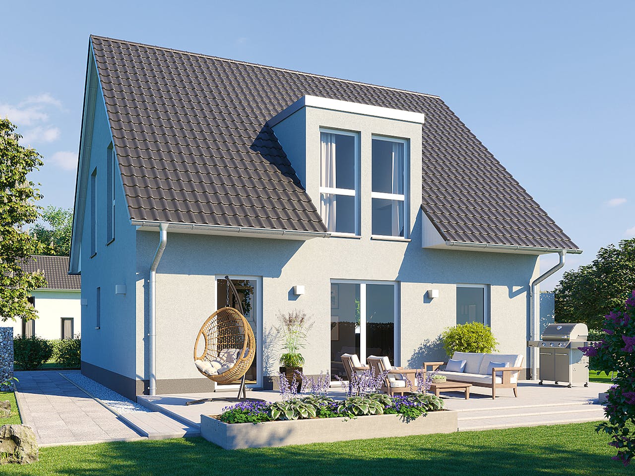 Das Einfamilienhaus Bamberg bietet auf 131 m² Wohnfläche großzügigen Raum für Ihre Familie, verteilt auf zwei Etagen. Ein besonderes Highlight ist die Flachdachgaube, die dem Haus eine moderne Note verleiht und für eine optimale Raumausnutzung sorgt. Im Erdgeschoss erwartet Sie ein großes, lichtdurchflutetes Wohnzimmer, das nahtlos mit einer offenen Küche verbunden ist. Ergänzt wird dieses Raumkonzept durch ein Arbeitszimmer und ein Gäste-WC, die zusätzlichen Komfort und Flexibilität bieten. Über die offene Treppe gelangen Sie ins Dachgeschoss, wo ein geräumiges Schlafzimmer mit angrenzender Ankleide auf Sie wartet. Zudem stehen Ihnen zwei individuelle Räume zur Verfügung, die vielseitig als Gäste-, Kinder- oder Arbeitszimmer genutzt werden können. Das großzügig geplante Badezimmer rundet das Raumangebot ab und sorgt für Wohlfühlatmosphäre.