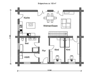 Passen Sie den Grundriss an Ihre persönlichen Bedürfnisse an und besprechen Sie Ihren individuellen Plan mit einem Bauberater des Anbieters.
