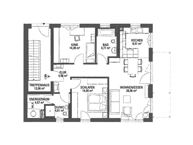 Passen Sie den Grundriss an Ihre persönlichen Bedürfnisse an und besprechen Sie Ihren individuellen Plan mit einem Bauberater des Anbieters.