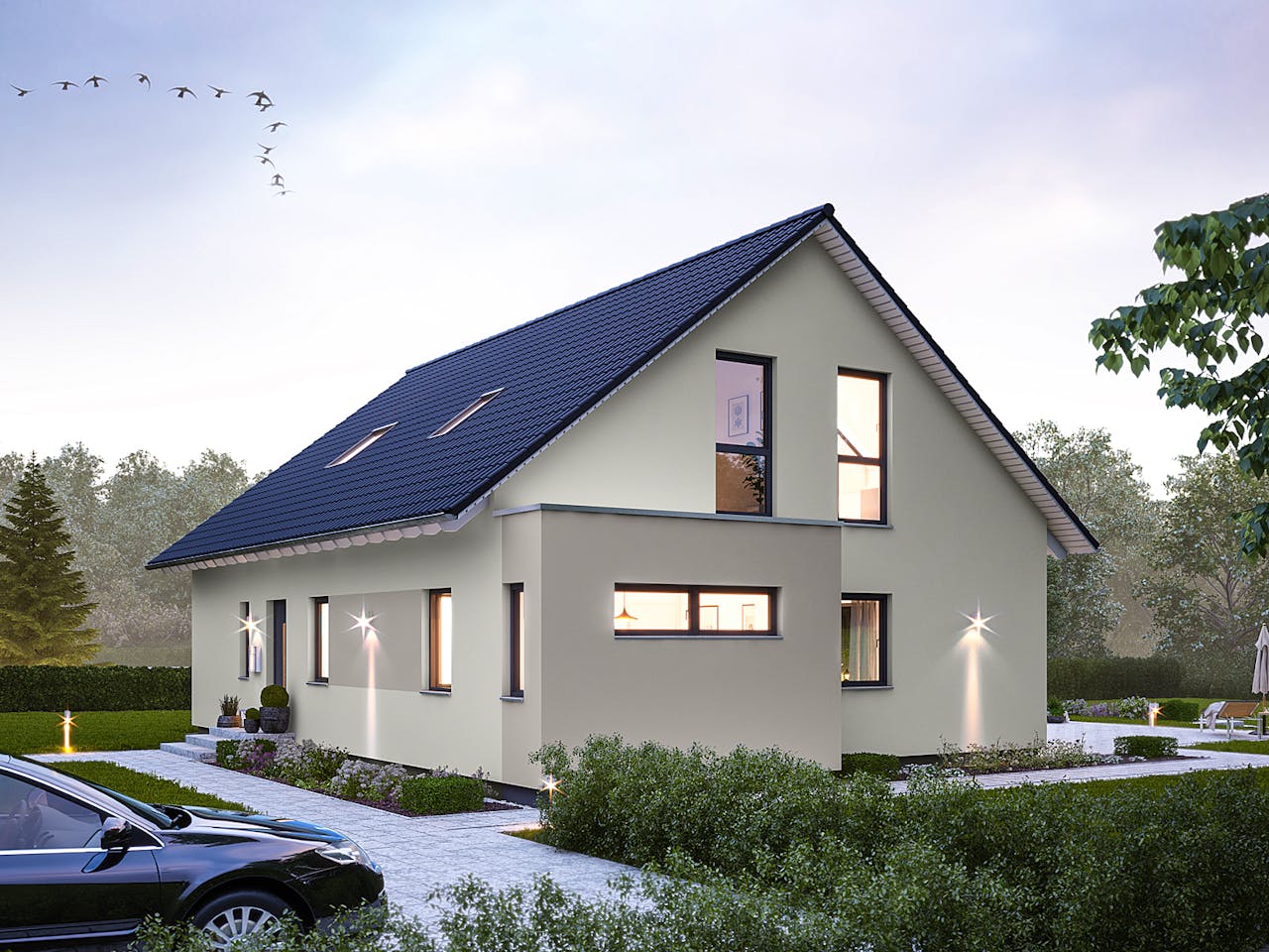 Individualität und moderne Architektur im FamilyStyle 20.01 S - Das Mehrgenerationenhaus besticht durch eine klare Außendarstellung und ist ideal für Familien mit dem Wunsch nach viel Freiraum geeignet. Im Erdgeschoss befindet sich die integrierte Einliegerwohnung die durch Jung- und Alt, flexibel nach den Vorstellungen der Baufamilie, genutzt werden kann.