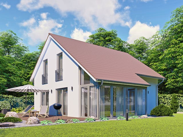Modern und familienfreundlich – das ist Haustyp Verona, unser sonnendurchfluteter Wohntraum. Durch großzügige Fensterflächen auf beiden Ebenen sowie den einladenden Wintergarten sind Sie auch im Winter draußen zuhause.