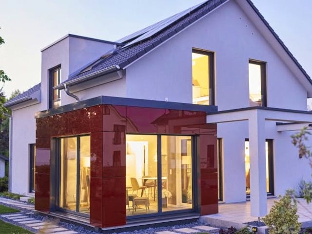 Ein Effizienzhaus 40 Plus verbraucht im Vergleich zum Referenzhaus 100 > 60 % weniger Energie. Sie müssen für den Hausbau mit Mehrkosten von ~ 13,5 % rechnen, die sich aber mittelfristig auszahlen. Es verfügt im Vergleich zum Effizienzhaus 40 über weitere Komponenten, wie beispielsweise eine Lüftungsanlage mit Wärmerückgewinnung, eine Anlage, mit der auf Basis erneuerbarer Energien Strom erzeugt werden kann und ein Batteriespeichersystem, mit dem überschüssige Energie eingespart werden kann.