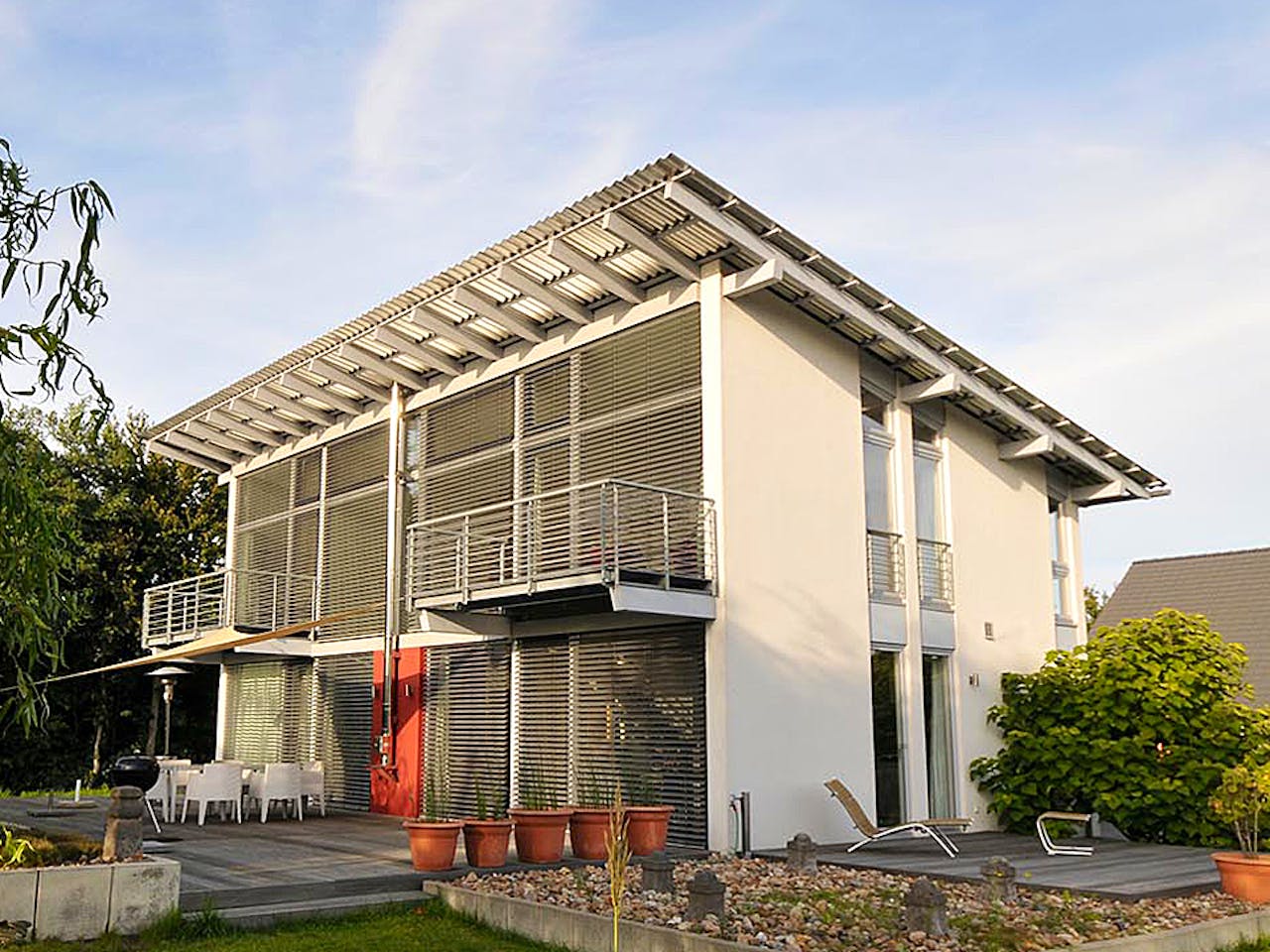 Gute Dämmung kann auch durchsichtig sein! Mit dem Haus "Sabine" wird gezeigt, wie trotz großer Glasflächen und einem sehr offenen Grundriss hervorragende Dämmwerte erzielt werden können. So kann dieses Haus mit seiner 3-fach Verglasung, der Thermobodenplatte, der sehr guten Wärmedämmung in allen weiteren Bauteilen und einer effizienten Haustechnik aus Wärmepumpe mit Fußbodenheizung und Lüftungsanlage mit Wärmerückgewinnung problemlos die KfW-Effizienzhaus 40 EE Kriterien erfüllen. Und man erhält so neben dem tollen Wohnklima und dem vielen Licht auch noch eine günstige Heizkostenabrechnung.