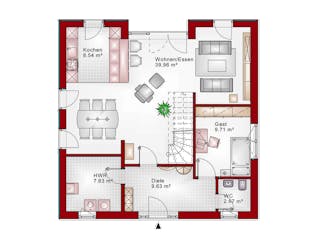 Passen Sie den Grundriss an Ihre persönlichen Bedürfnisse an und besprechen Sie Ihren individuellen Plan mit einem Bauberater des Anbieters.